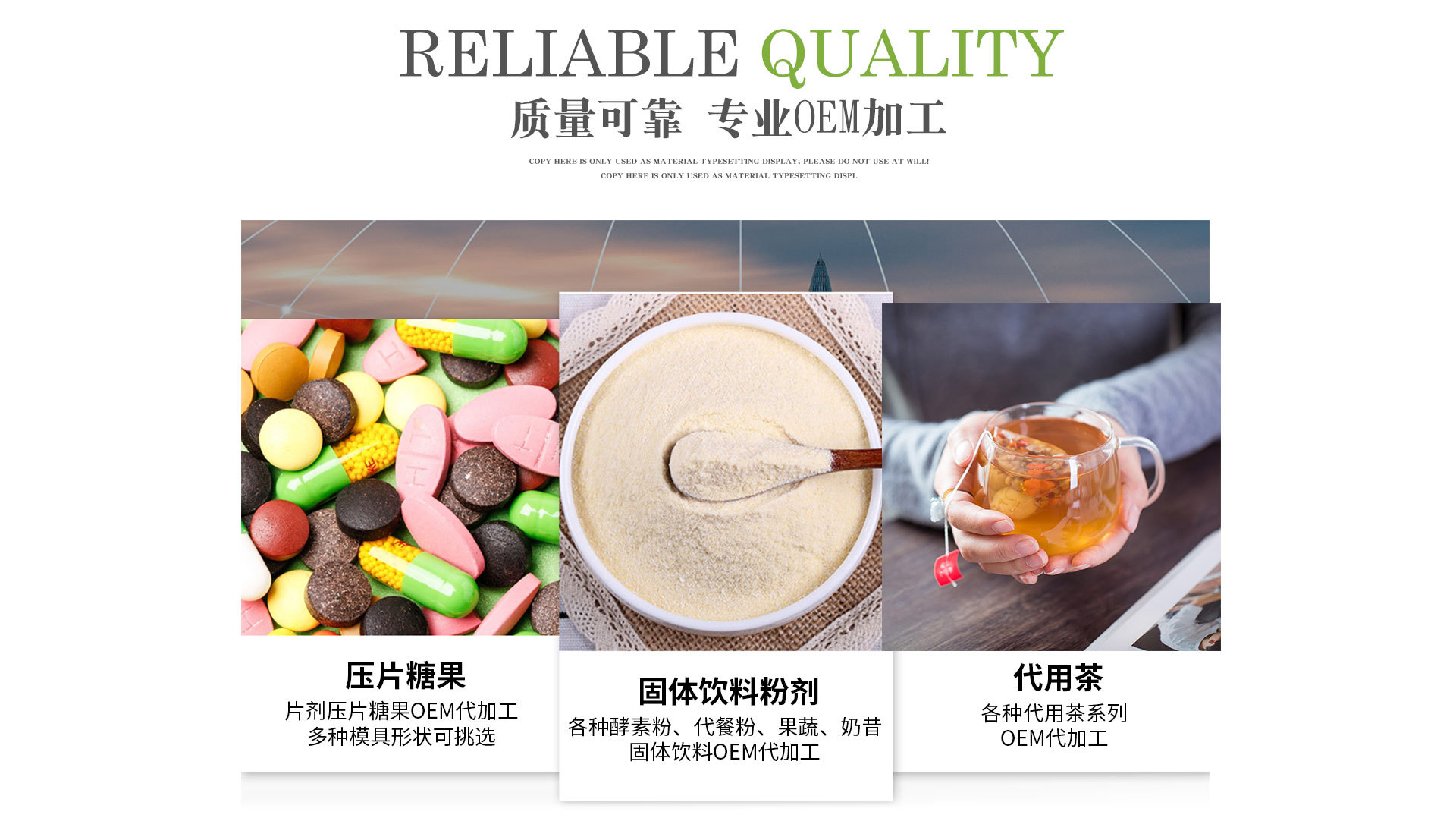 代工品類:保健食品 方便食品 特殊膳食 壓片糖果 固體飲料 飲品 丸劑 貼劑 膠囊 顆粒 消字號消殺用品