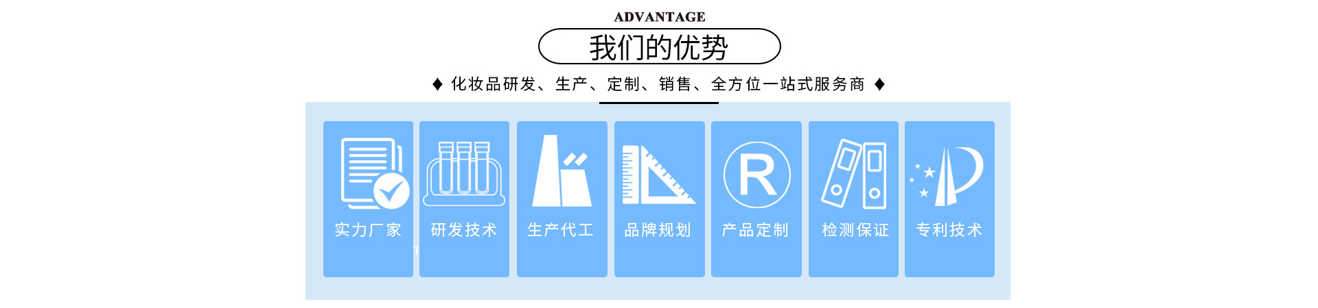 我們廣州歐盛化妝品有限公司創建于2006年9月,是一家集化妝品原料研制、配方開發、加工生產及配套性服務為一體的廠家,從事承接OEM/ODM/OBM化妝品代工企業,現已取得ISO9001,ISO22716和美版GMPC認證。公司擁有8000平方的GMP標準廠房,十萬級凈化車間,并引進國際化生產設備,具有良好的硬件設施和生產環境。歐盛化妝品為客戶提供從品牌定位、品牌策劃到產品的研發、生產、制作一條龍的服務。 工廠生產嚴格遵照國家藥品GMP及歐洲化妝品生產標準,各生產車間均采用1萬級空氣凈化,達到微菌化標準;全面引進享譽全球的德國IKA公司乳化均質機、英國克蘭公司密封裝置、德國ABB高速電機和美國Videojet噴碼機等當今國際性的生產設備,采用國際性生產工藝。目前,歐盛擁有一支有著豐富經驗的乳化團隊。 科學,天然,穩固,安全,高效,是我們產品所信守的原則。