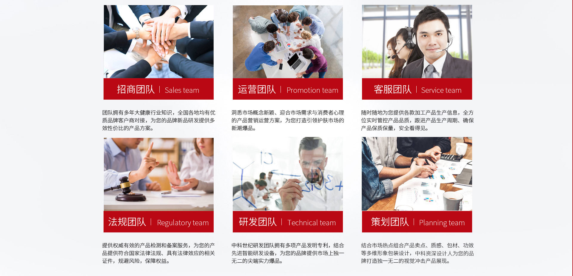 廣東中科世紀健康科技有限公司 領跑生命健康科技品牌新世紀 鑄就健康新零售研學銷新輝煌 廣東中科世紀健康科技有限公司(簡稱:中科世紀),隸屬于中國科學院科技產品健康板塊,中國科學院生命健康科技產業聯盟成員企業,中科院健康科技產品轉化的專業化生產企業。中科世紀致力弘揚中醫藥文化,用科技改善人民生活質量,提高國人生活品質,構建以“生命健康科技產品、更廣健康經營領域、更加貼心健康服務和更高健康企業管理”的大健康產業格局,打造品牌卓著、實力雄厚、國際化的大健康產業企業。 中科世紀以研、產、供、銷一體化戰略,依托中國科學院雄厚的科研力量和各地獨特的地理環境與豐富的資源,研究和開發天然保健食品、功效食品、醫療器械、消字類等產品,在渠道構建上主要有五大板塊、微商板塊、直銷板塊、電商板塊、線下控銷板塊、中科教育板塊。