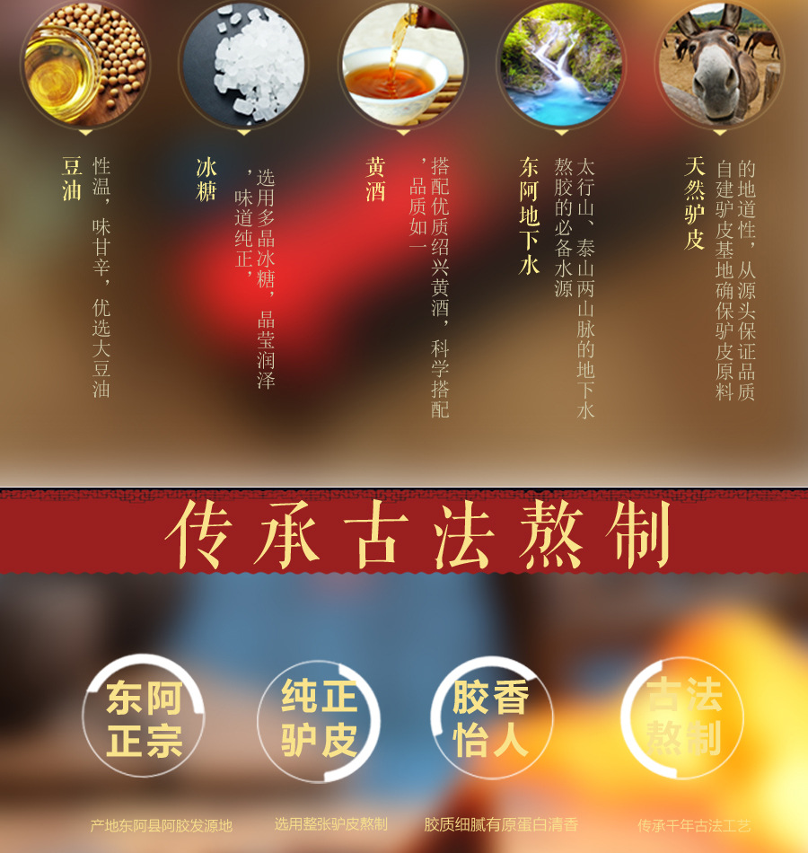 山東泓舜堂阿膠有限公司成立于2016年4月20日,是一家集阿膠及阿膠系列產(chǎn)品研發(fā)、生產(chǎn)、銷售于一體的企業(yè),公司主要經(jīng)營:阿膠、龜甲膠、鹿角膠、海龍膠、黃明膠、即食阿膠糕、阿膠固元膏、驢膠顆粒、阿膠速溶粉、阿膠口服液、阿膠紅糖、阿膠棗、阿膠葡萄酒、阿膠丁、阿膠珠、原料膠、阿膠碎塊、鋁塑阿膠片、阿膠小方塊、阿膠大八塊等阿膠系列產(chǎn)品。公司坐落于中國阿膠之鄉(xiāng)——山東省東阿縣,地理位置優(yōu)越,交通便利,環(huán)境優(yōu)美。 東阿縣地處魯西平原,為中國阿膠之鄉(xiāng)、喜鵲之鄉(xiāng)、國家級生態(tài)示范區(qū),被譽為“萬戶喜鵲吉祥地,千年阿膠福壽鄉(xiāng)”。東臨黃河、泰山,泰山和太行山兩股地下潛流匯集東阿,因此自古就有“天地精華東阿水,千凝百煉鑄阿膠”之說。 我公司始終致力于阿膠制品和阿膠普食化,重視品牌形象,始終堅持品牌化運營理念打造阿膠高端品牌形象,延伸產(chǎn)業(yè)鏈條,通過繼承、創(chuàng)新阿膠行業(yè)發(fā)展,推進產(chǎn)品現(xiàn)代化,實現(xiàn)從優(yōu)秀到卓越的跨越。