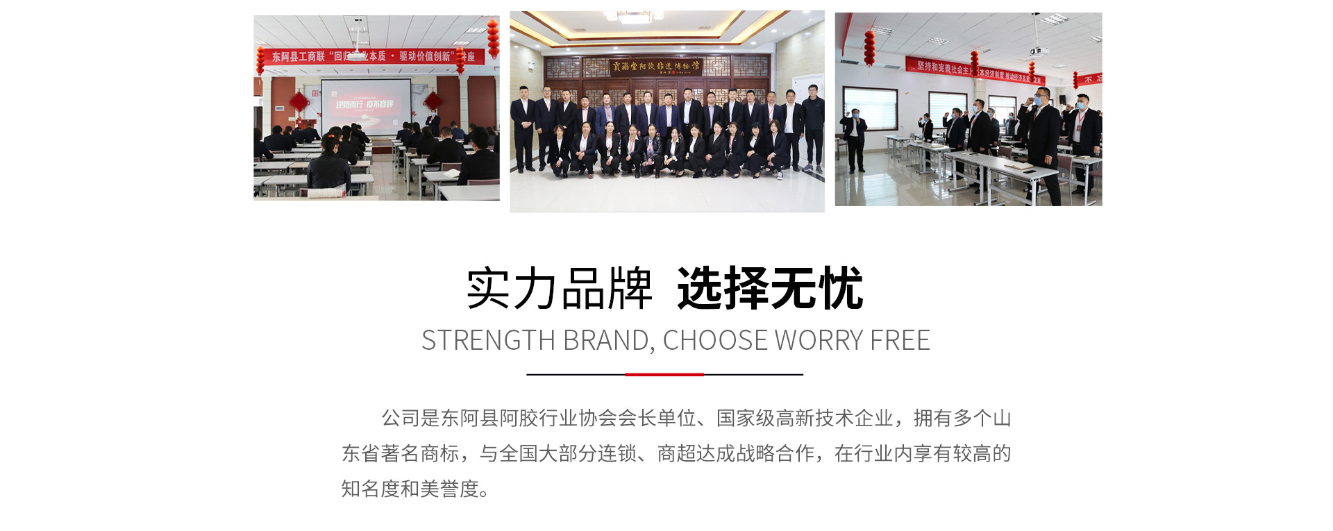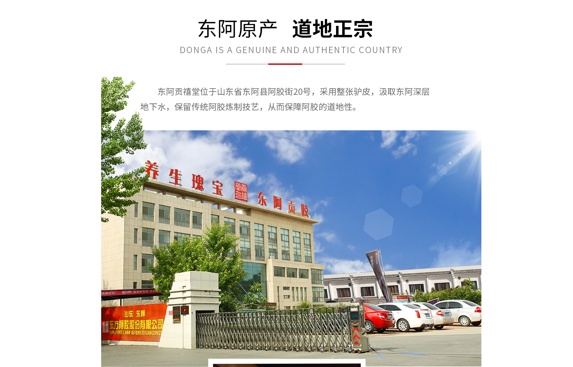 山東東阿東方阿膠股份有限公司于 2002 年成立,坐落于著名的阿膠 之鄉——東阿縣阿膠街 020 號,注冊資金 6000 萬元,占地 100 余畝,現 有員工 300 余人,阿膠及阿膠系列產品年生產能力達 3000 余噸,是一家集生產、研發、銷售、服務為一體的高新技術企業。 公司取得 8 個保健食品文號,6 大項十余種產品的SC 認證許可,獲得20 余項國家專利。是“山東省高新技術企業”,“山東省企業技術中心”和省級“一企一技術”中心科技平臺,“山東省消費者滿意單位”,連續三屆榮獲“山東省名牌產品”、“山東省著名商標”稱號,率先通過了 ISO9001 質量管理體系、22000 食品安全管理體系及HACCP 危害分析與關鍵控制點體系認證,連續數年入圍中國阿膠十大品牌。