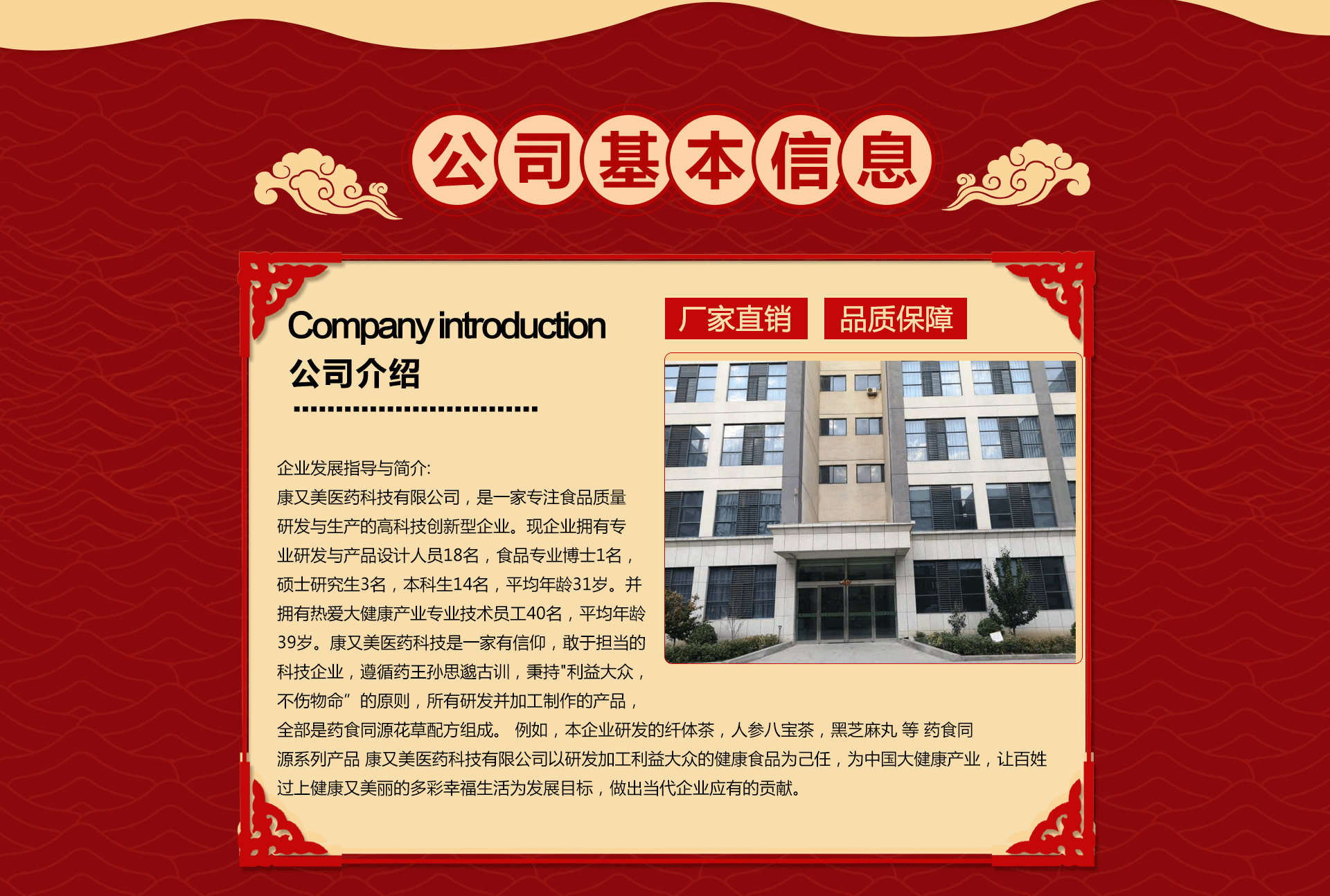 河南康又美醫藥科技有限公司是袋泡茶、五寶茶、罐裝茶、中藥材等產品專業生產加工的公司,有穩定的原材料供應商,均為一手貨源。生產設備齊全,有大容量倉庫,可承接大單急單。公司員工隊伍不斷壯大,素質不斷提高。另有專業研發人員,不斷試驗開發新品。使得公司能更好的掌握市場需求,生產市場需要的產品。公司擁有完整、科學的質量管理體系,產品質量安全過關。河南康又美醫藥科技有限公司的誠信、實力和產品質量獲得業界的認可。歡迎各界朋友蒞臨參觀、指導和業務洽談。