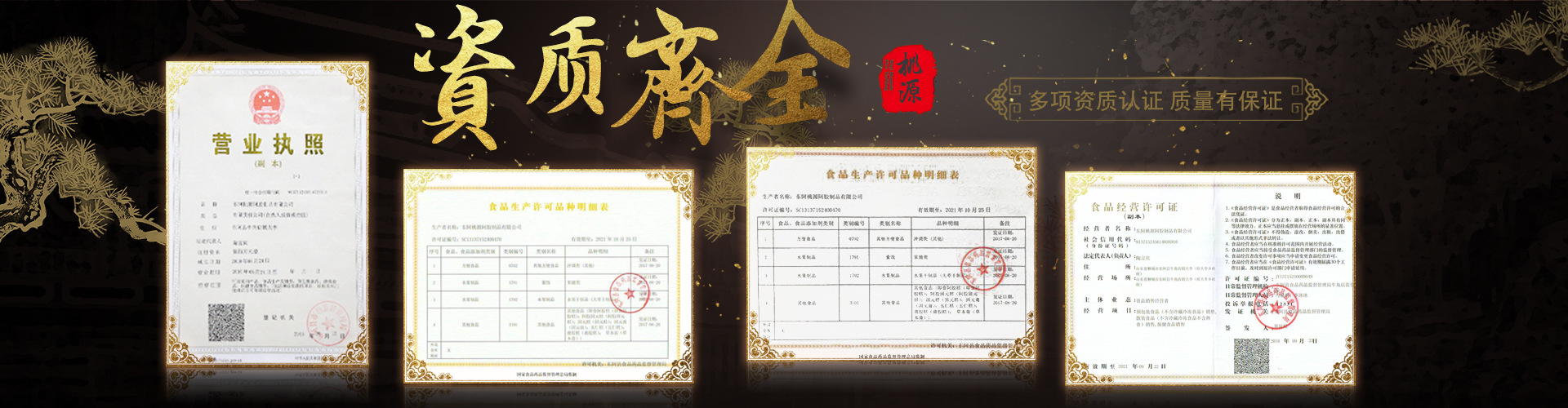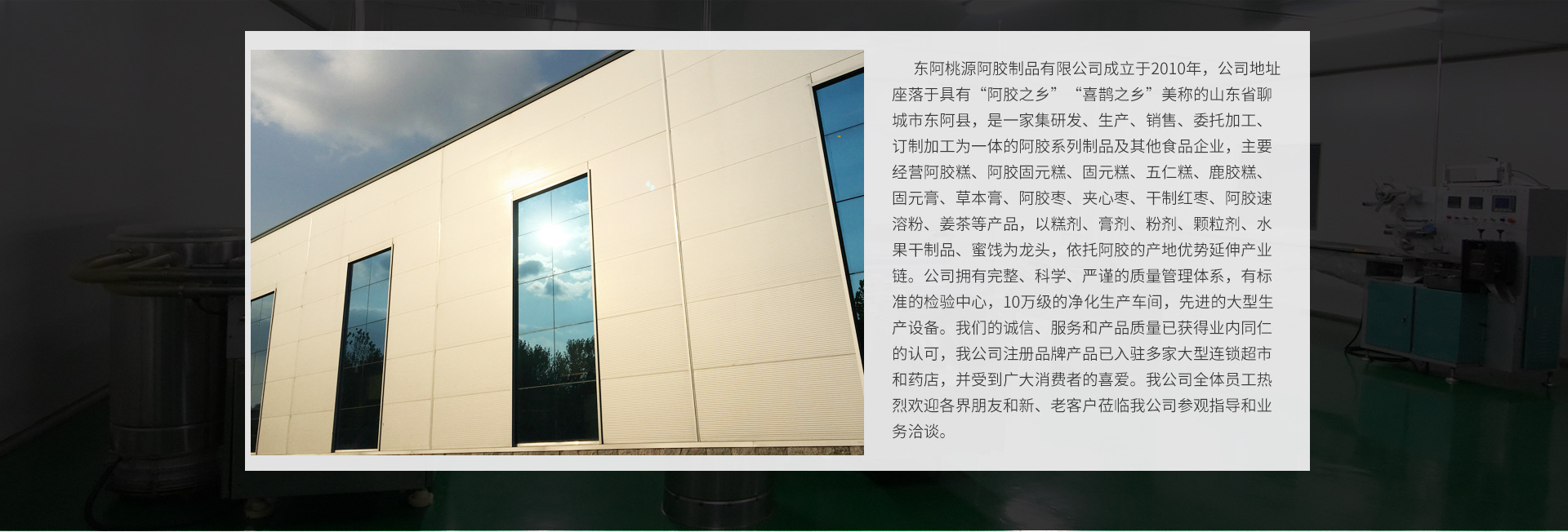 東阿桃源阿膠制品有限公司成立于2010年,坐落于具有“阿膠之鄉”美譽的山東省聊城市東阿縣,是一家集研發、生產、銷售、代工為一體的企業,主要經營產品有阿膠糕、阿膠固元糕、固元糕、固元膏、五仁糕、鹿膠糕、草本膏、干制紅棗、夾心棗、阿膠棗、姜茶、阿膠速溶粉、食圓(黑芝麻丸)等,以阿膠產業基地為依托延伸糕劑、膏劑、顆粒制品、粉劑、丸劑、水果干制品等,公司通過質量管理體系ISO22000認證,有標準化驗室,10萬級凈化車間,現代化生產設備,我們支持全國各級代理,電商采購、微商采購、直播代購、一件代發等業務,歡迎新老客戶蒞臨參觀指導工作。