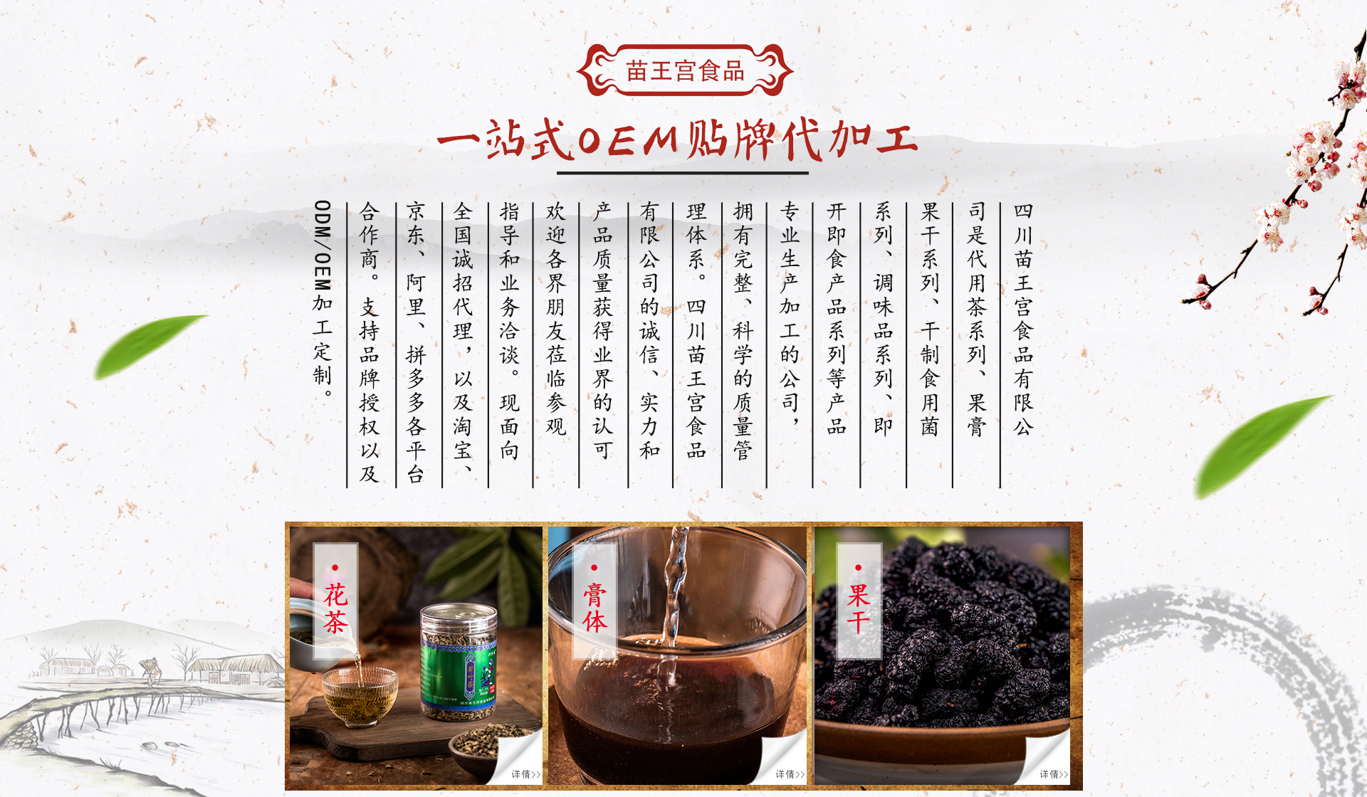四川苗王宮食品有限公司是代用茶系列、果膏果干系列、干制食用菌系列、調味品系列、即開即食產品系列等產品專業生產加工的公司,擁有完整、科學的質量管理體系。四川苗王宮食品有限公司的誠信、實力和產品質量獲得業界的認可。歡迎各界朋友蒞臨參觀、指導和業務洽談。