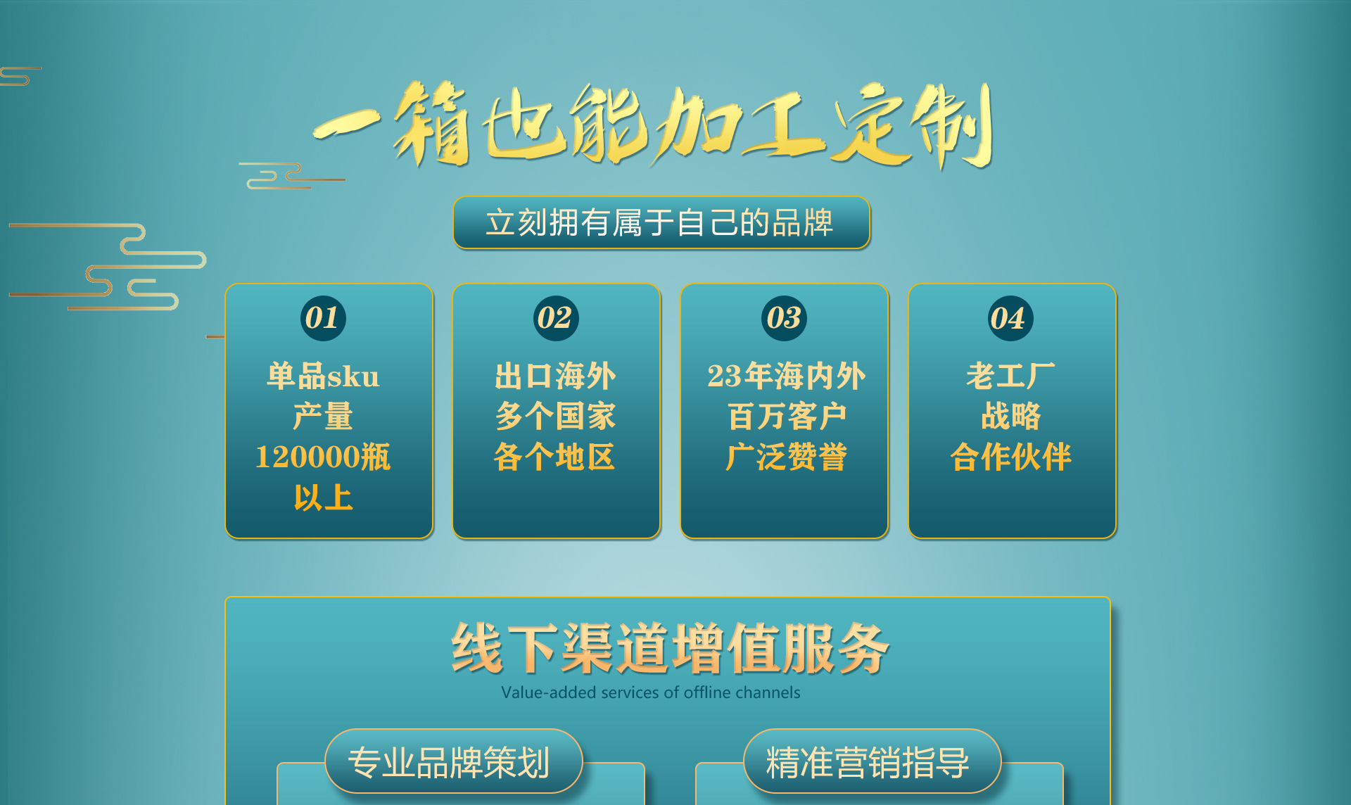 版權所有 代工幫 【www.cndrinks.cc】 CopyRight 2020-2025 豫網藥信備字[2025]00123號 電信與信息服務業務經營許可證:豫ICP備20017666號-3 鄭州代工幫網絡科技有限公司 公司地址:鄭州市金水區北環路與文化路瀚海北金B座7019室 聯系電話:0371-55621375 本站只起到信息平臺作用,不為交易經過負任何責任,請雙方謹慎交易,以確保您的權益 任何單位及個人不得發布欺騙性產品信息