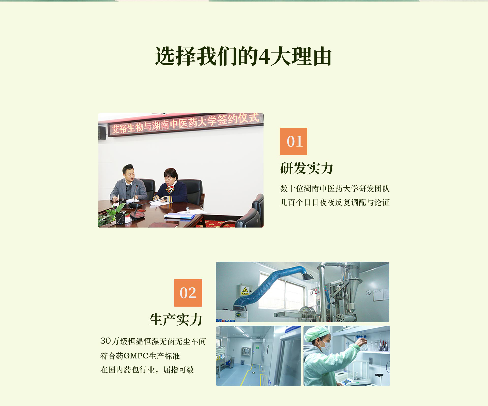 艾裕的原材料來源于自家的種植基地,艾裕在湖南漣源擁有一片自己的種植基地,專注為艾裕工廠供應原材料。艾裕聯合湖南中醫藥大學,根據不同人群的需求,參考中醫藥大學附屬醫院臨床數據,研制配方。艾裕在自建30萬無塵凈化車間(通過了PONY譜尼測試菌落指數低于30萬),從生產環節上解決了其他雜質對產品的污染問題,再經技術人員生產加工,將泡浴與現代技術進行結合,在保持藥浴品質的同時,大大地提升藥浴的功效!