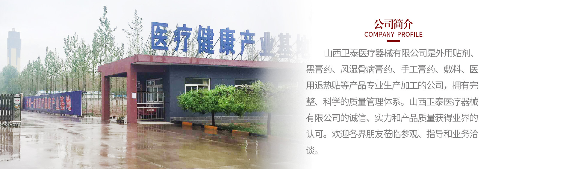山西衛泰醫療器械有限公司成立于2016年6月,位于侯馬經濟開發區,處于晉、陜、豫三省中樞地帶和臨汾、運城、晉城,三區市的中心位置。是一家專業生產一類醫用冷敷貼和日用品,集自主研發、設計、制造、銷售和服務為一體的康復輔助治療產品的專業性生產企業。