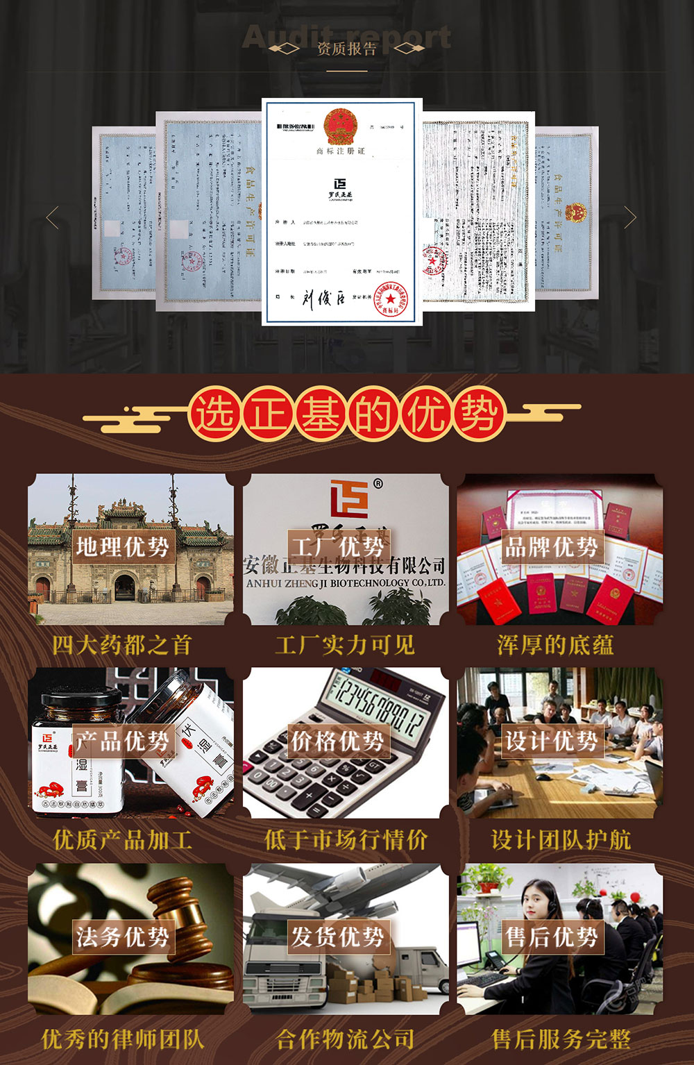 安徽正基生物科技有限公司2013年在中國四大藥都之一安徴毫州注冊成立。這里有全國最大的中藥材批發市場,這里有100多萬畝綠色中藥材生產基地,這里流傳著近2000年的華佗中醫藥文化。 安徽正基生物科技有限公司集研發生產、銷售于一體的專業性企業,目前公司根據市場需求推出天然花草茶、功效組合茶、養生袋泡茶營養代餐粉、配方代餐粉、速溶顆粒沖劑、等多種藥食同源養生保健品。 安微正基生物科技有限公司繼承中醫藥,文化遺產發揚養生毫州理念,以堅持獨立配方選料上乘工藝精湛為核心!以做保健精品惠及客戶為宗旨!努力打造專業精優的養生產品!為客戶提供專業可靠誠信的優質服務! 熱烈歡迎同行友人及合作伙伴蒞臨洽談合作!