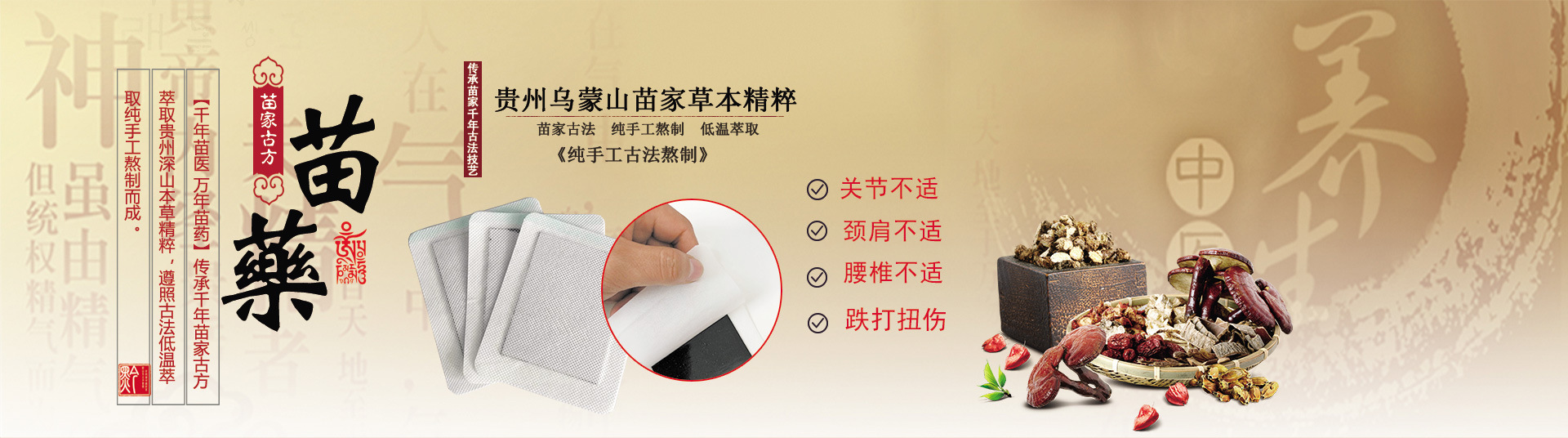 貴州苗濟堂生物科技有限公司是一家專業從事研發生產中醫保健貼劑、擦劑、膏劑 粉劑的高新企業,生產基地坐落于有“苗族之都”尊稱的貴州。 苗濟堂人風雨同舟,砥礪前行,目前取得發明專利、實用新型專利。經過研 發團隊的努力,相繼推出了符合現代養生理念的綠色養生產品。公司以“傳承苗家古方惠澤天下蒼生”為宗旨,立足具有名族特色的產品,依托豐富的苗藥資源優勢,結合用現代化高新技術研發,挖掘中 醫文明的積淀,走產業化、規模化的發展道路,服務百姓奉獻人民,努力為健康護航! 貴州苗濟堂