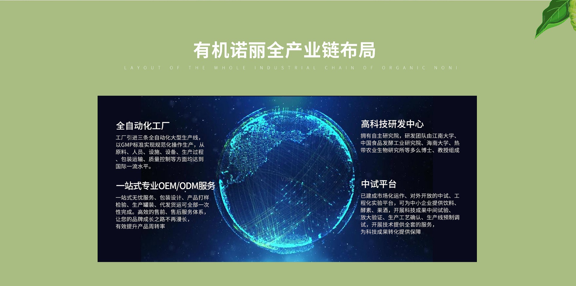 海南西沙諾麗生物有限公司由海南陸僑集團(tuán)注資成立,是專門從事諾麗有機(jī)種植、研發(fā)、有機(jī)加工的高新技術(shù)型企業(yè)。企業(yè)在海南熱帶地區(qū),自有多處有機(jī)種植示范基地,從選種、育苗、栽種、生產(chǎn)到品牌營(yíng)銷全產(chǎn)業(yè)鏈布局。擁有生物技術(shù)研究院、專業(yè)營(yíng)養(yǎng)師團(tuán)隊(duì)以及中國(guó)、美國(guó)、日本、歐盟四國(guó)有機(jī)認(rèn)證,企業(yè)多年來致力于健康營(yíng)養(yǎng)產(chǎn)品的開發(fā)。海南西沙諾麗生物科技有限公司的誠(chéng)信、實(shí)力和產(chǎn)品質(zhì)量獲得業(yè)界的認(rèn)可。歡迎各界朋友蒞臨參觀、指導(dǎo)和業(yè)務(wù)洽談。