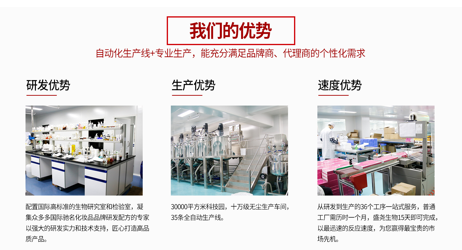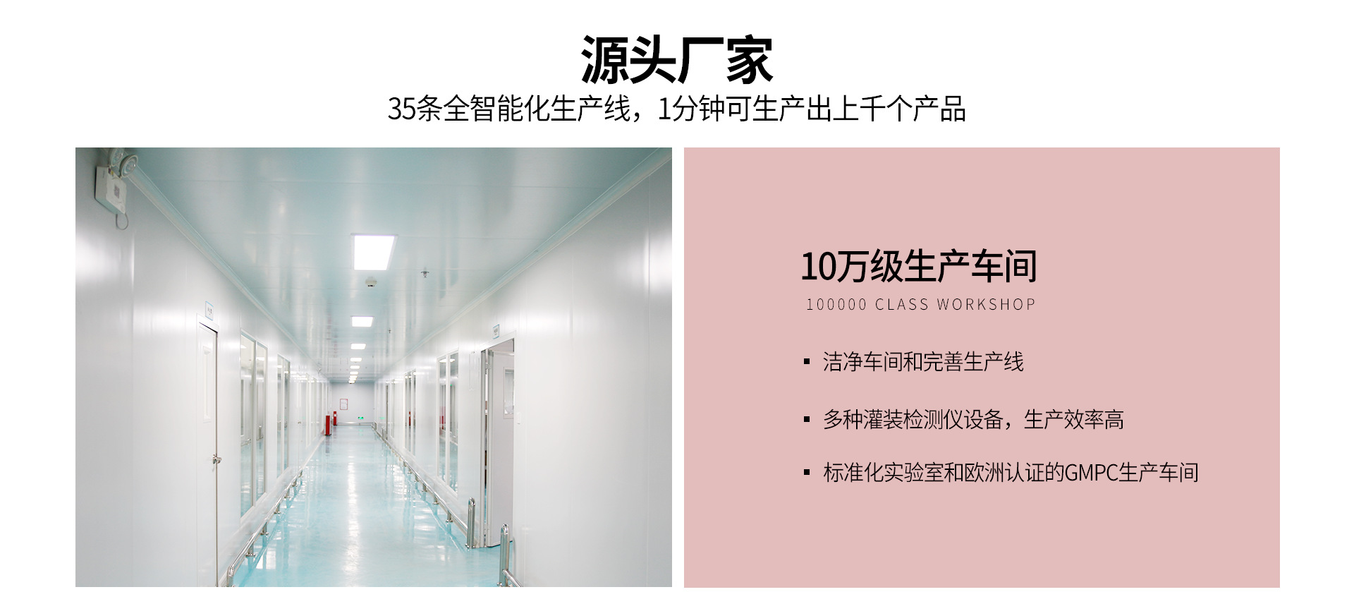 闡心控股旗下?lián)碛腥笊a(chǎn)基地、四大證件批文:廣州妝字號(hào)生產(chǎn)基地、昆明消字號(hào)、械字號(hào)生產(chǎn)基地、銀川食字號(hào)生產(chǎn)基地。擁有一流的研發(fā)團(tuán)隊(duì)、一流的生產(chǎn)環(huán)境、一流的生產(chǎn)設(shè)備,可日產(chǎn)30萬支婦科凝膠、300萬粒私密膠囊、美容套盒2萬套、軟管3萬支、玻璃瓶8萬支、安瓶25萬支、面膜100萬片。