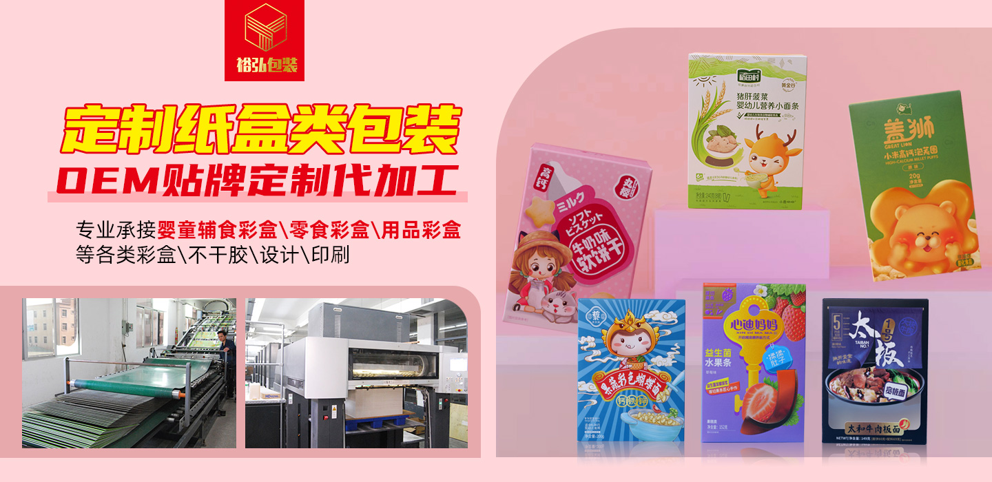 汕頭市裕弘包裝印刷有限公司,專業承接嬰童輔食彩盒,零食彩盒,用品彩盒等各類彩盒,不干膠,設計,印刷,多種高端工藝可供選擇,金銀卡,UV逆向油,深壓紋,3D轉移鐳射,質優價廉,歡迎垂詢。