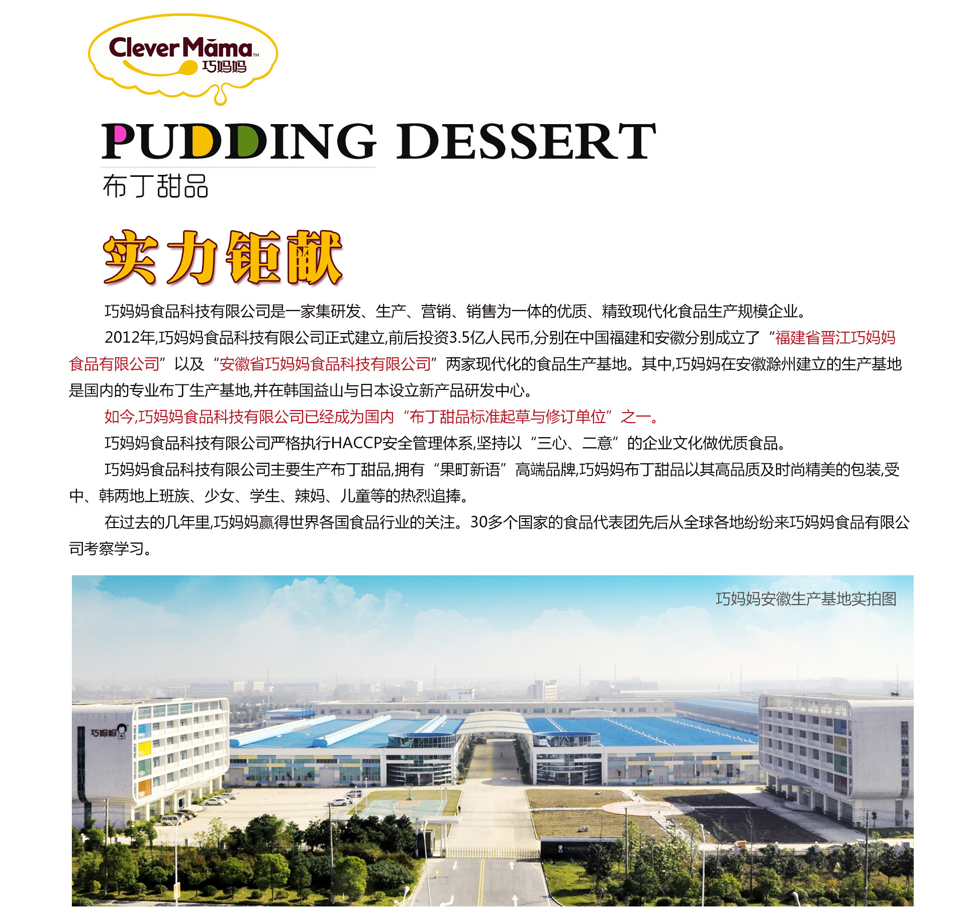 福建省晉江巧媽媽食品有限公司是一家集研發(fā)、生產、銷售為一體的優(yōu)質、精致、高端的食品生產企業(yè),自2009年以來以1.8億人民幣分別在中國成立了福建省晉江巧媽媽食品有限公司及安徽省巧媽媽食品科技有限公司兩家現(xiàn)代化的食品生產基地。