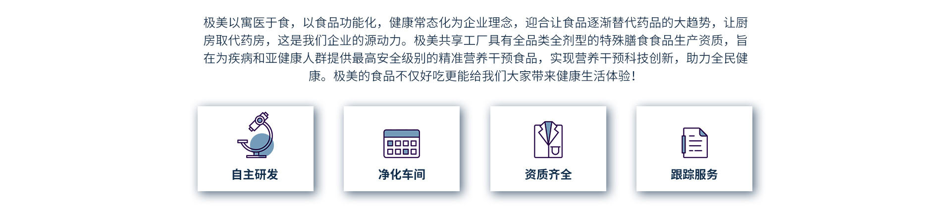 極美(天津)功能食品研究發展中心(有限合伙)是功能食品、特殊膳食、蛋白棒、蛋白肉等產品專業生產加工的公司,擁有完整、科學的質量管理體系。 2000平米的10萬級中試車間,20000平米的功能食品和飲品生產線,擁有多條液體生產線、粉劑生產線、壓片糖果生產線、蛋白棒生產線、凝膠糖果生產線、夾心餅干生產線、凍干產品生產線、代用茶生產線。 極美共享工廠依托天賦能集團,擁有中國科學院、中國中醫科學院、食品營養與安全國家重點實驗室、北美功能食品研究院等科研單位的技術支持,擁有權威專家及學者、醫學博士、國家級高級營養師的研發團隊。 極美(天津)功能食品研究發展中心(有限合伙)的誠信、實力和產品質量獲得業界的認可。歡迎各界朋友蒞臨參觀、指導和業務洽談。