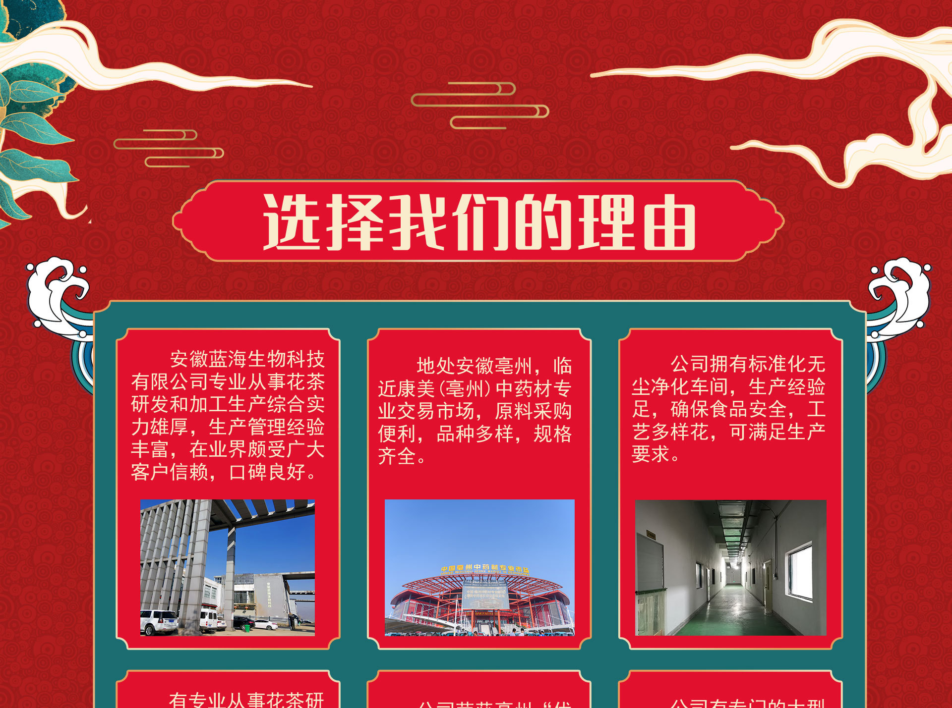 安徽藍海生物科技有限公司坐落于安徽亳州市互聯(lián)網(wǎng)創(chuàng)業(yè)示范園,本公司是一家致力于集科研開發(fā)、產(chǎn)品生產(chǎn)、物流配送、市場銷售為一體的,服務(wù)于全國客戶的公司。涵蓋中國大部分省市及地區(qū),采用店面銷售、會議銷售、網(wǎng)絡(luò)銷售、經(jīng)銷商分銷等多種模式進行銷售。安徽藍海生物科技有限公司是芝麻丸、花茶、膏滋等產(chǎn)品專業(yè)生產(chǎn)加工的公司,擁有完整、科學(xué)的質(zhì)量管理體系。安徽藍海生物科技有限公司的誠信、實力和產(chǎn)品質(zhì)量獲得業(yè)界的認(rèn)可,歡迎各界朋友蒞臨參觀、指導(dǎo)和業(yè)務(wù)洽談。