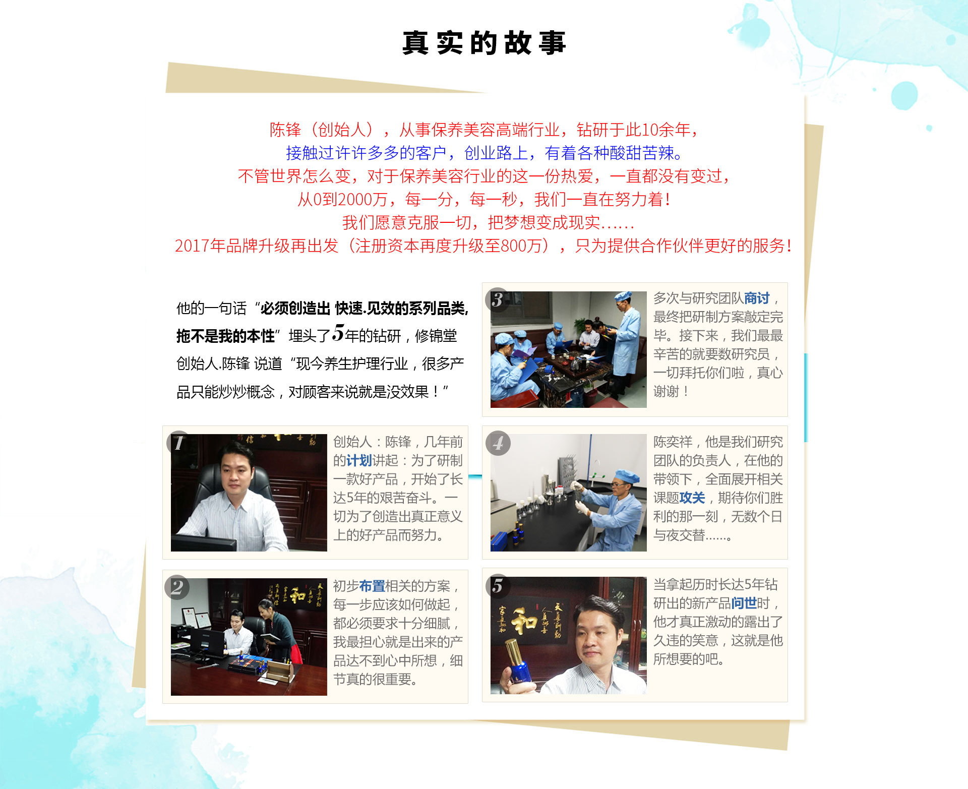 廣州修錦堂化妝品有限公司成立于2012年,多年化妝品生產(chǎn)開發(fā)經(jīng)驗(yàn)。是一家致力于功能性化妝品原料及天然活性提取物研發(fā)、生產(chǎn)、銷售與服務(wù)為一體的現(xiàn)代化專業(yè)美容護(hù)膚品公司。 公司秉承"專業(yè)、專注、共享、永續(xù)"的企業(yè)管理理念,堅(jiān)持“技術(shù)優(yōu)勢(shì),高效管理,持續(xù)改進(jìn),客戶滿意”的方針,引進(jìn)法國先進(jìn)技術(shù)和科學(xué)的經(jīng)營(yíng)管理方法,生產(chǎn)經(jīng)營(yíng)國內(nèi)優(yōu)秀的、具品質(zhì)、純天然植物提取的功效性化妝品。以 “天然、高效、安全”的產(chǎn)品,讓每一位使用公司產(chǎn)品的愛美人士健健康康美容。 公司致力于做品質(zhì)技術(shù),優(yōu)質(zhì)產(chǎn)品,良好服務(wù),完善的管理,成就你我的輝煌。 本公司可提供:加工、定制、批發(fā)、招商、代理、微商……。 品牌商標(biāo):修錦堂®、乳韻花語®、吻西®、一激®、秒爽®、密密暖®、暖小蜜®、妮玫雅姿®……【眾多品牌】。 主營(yíng)產(chǎn)品:快速祛痘產(chǎn)品【吻西祛痘納米萃取精華】、亞健康調(diào)理產(chǎn)品【一抹量子液】、乳腺精油……