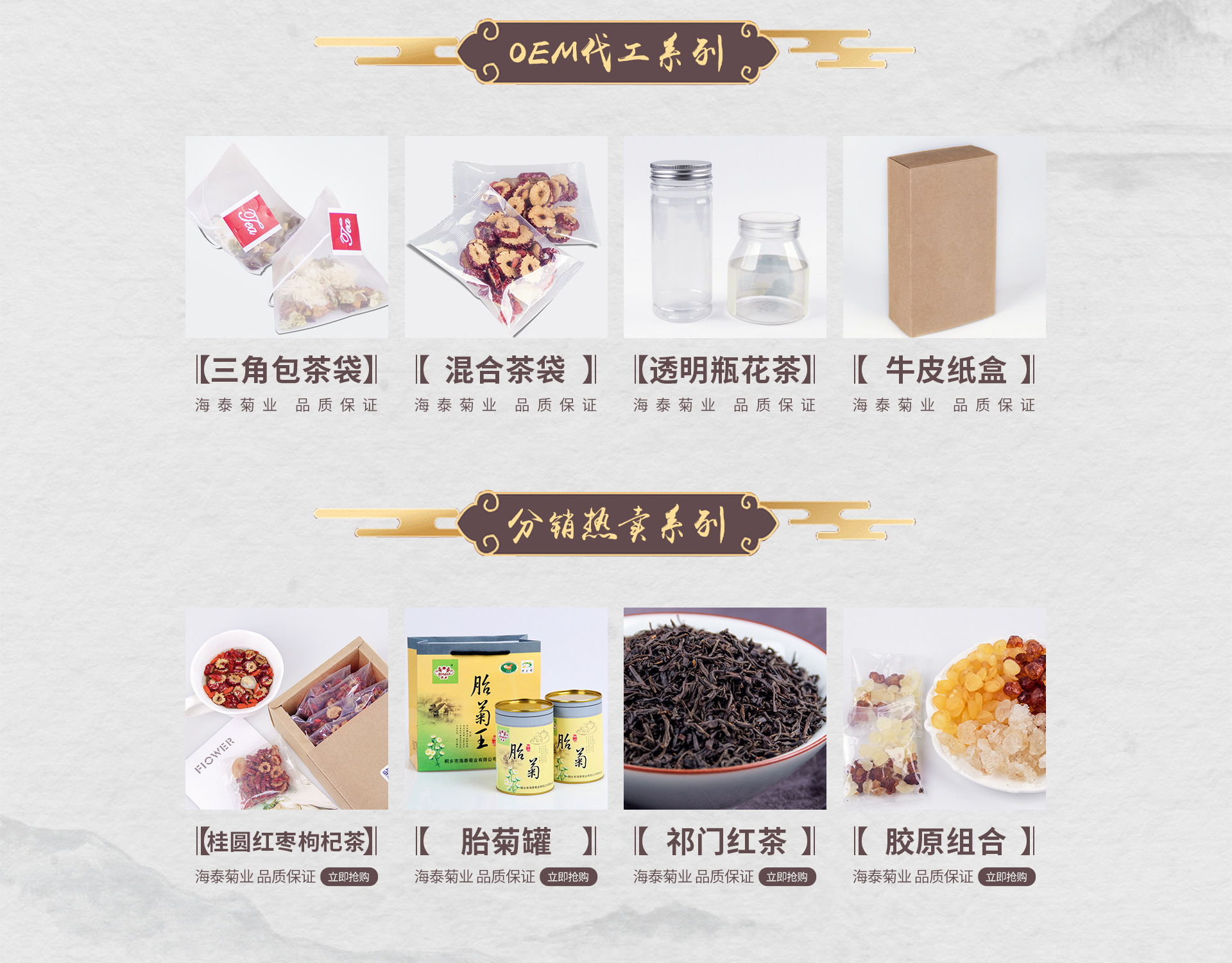 浙江省桐鄉(xiāng)市海泰菊業(yè)有限公司(前身:桐鄉(xiāng)市大發(fā)杭白菊制品廠)成立于2003年,位于杭嘉湖平原,杭白菊原產(chǎn)地“中國杭白菊之鄉(xiāng)”--浙江桐鄉(xiāng)。 是一家集杭白菊種植、收購、加工生產(chǎn)、銷售為一體的私營企業(yè)。公司現(xiàn)有生產(chǎn)廠房8000平方米,大型冷庫4個.1000多平方米,職工上百人(其中專業(yè)農(nóng)技人員8人)用公司基地出產(chǎn)的鮮菊花為原料,通過先進的微波蒸汽殺青、殺菌和熱氣流一次性干燥精制而成。以產(chǎn)品無公害、無污染,高技術等特點。 產(chǎn)品以其獨特的色、香、味、形而享譽國內(nèi)外,主要出口東南亞等國家,遍布國內(nèi)大中城市。