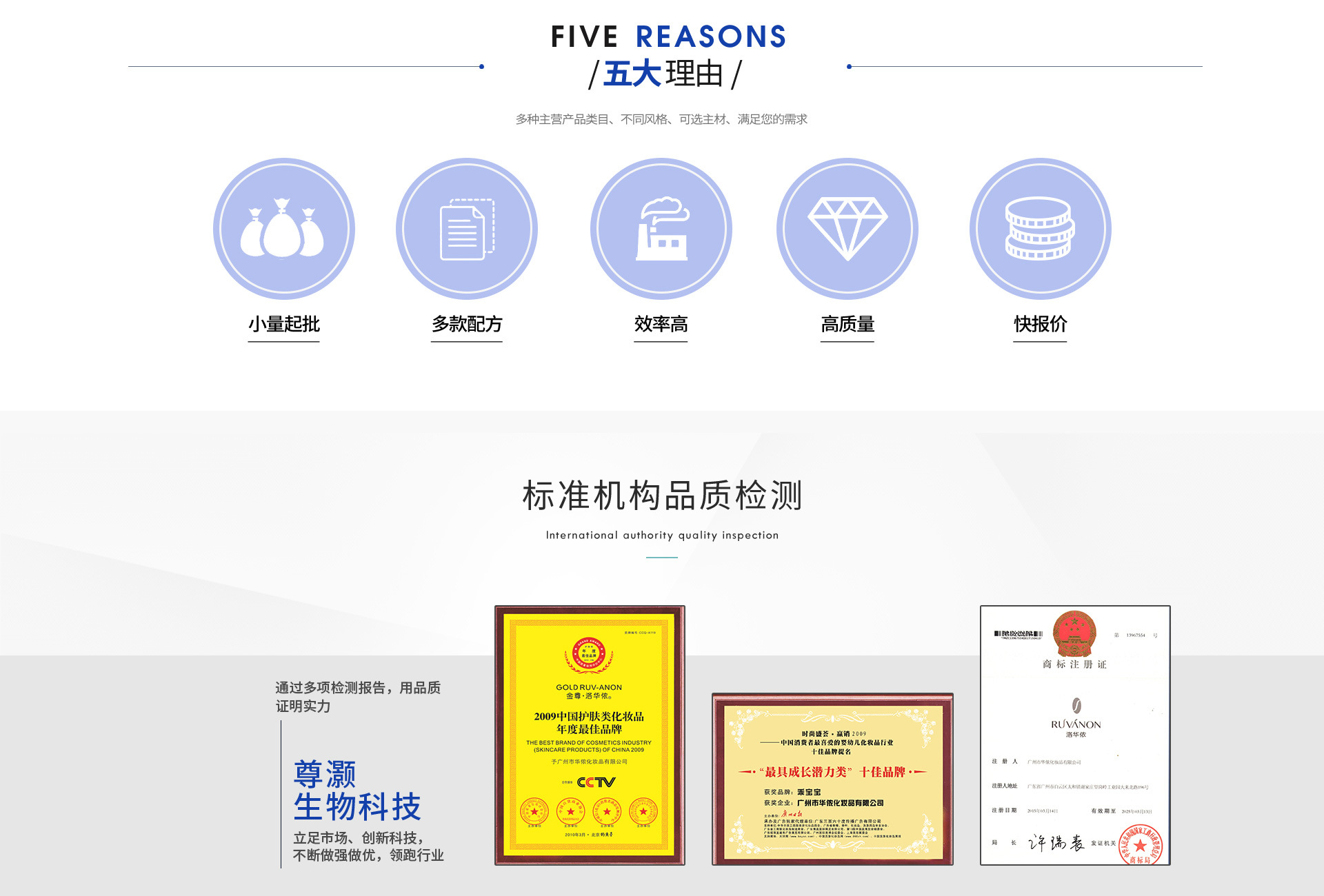 廣州尊灝生物科技有限公司是美妝、護膚、洗護等產品專業生產加工的公司,擁有完整、科學的質量管理體系。公司位于交通便捷、物流發達的廣州白云區太和工業基地,是廣州最發達、最大的化妝品生產集散地。公司廠區環境優美,廠房面積超過5000平方米,生產車間環境完全按照GMP認證所需要的條件建設,其中實驗室、灌裝間、內包材消毒存放間和更衣室均采用十萬級空氣凈化標準.廣州尊灝生物科技有限公司的誠信、實力和產品質量獲得業界的認可。歡迎各界朋友蒞臨參觀、指導和業務洽談。