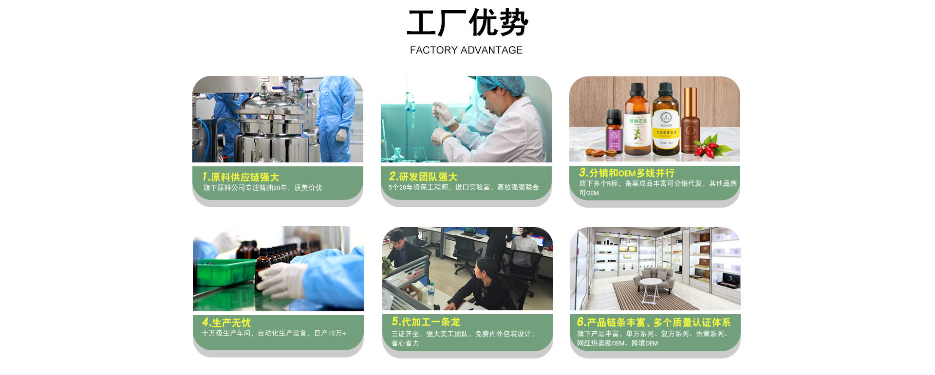 江西御美化妝品有限公司是一家專注于精油生產加工研發的化妝品有限公司。公式主要業務單方精油、基礎油、復方按摩精油、香薰精油的等等相關產品的生產加工與研發。我們可以提供精油類目配方1000多種,支持來樣加工,公司十萬級廠房,6條自動化灌裝生產線,日產10萬瓶,主要做精油的加工和出口,歡迎來電洽談生產與加工。